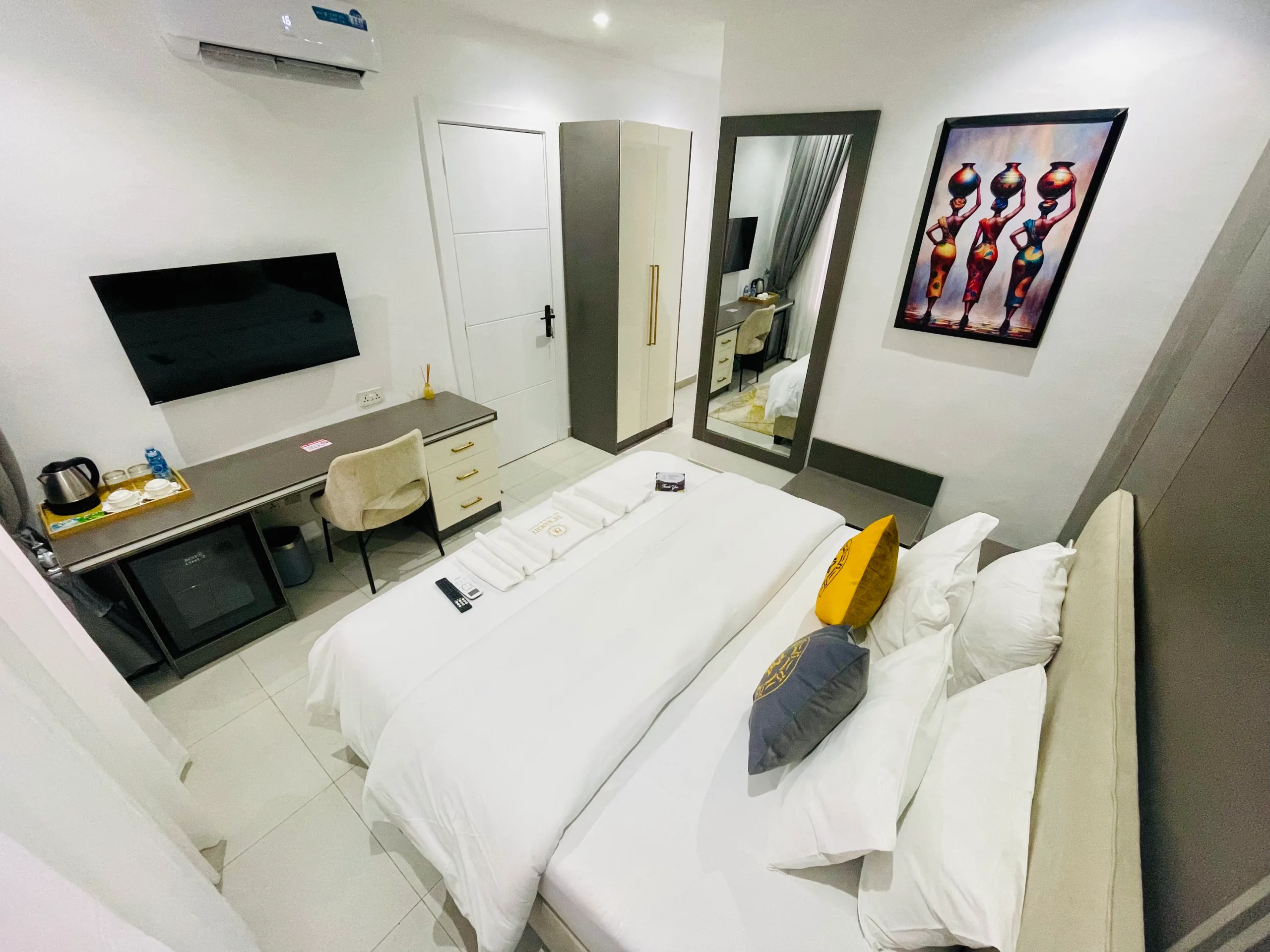 Indulge in elegance and comfort in our Royal Suite, featuring a plush king-size bed, a spacious lounge area, and a luxurious bathroom. Perfect for guests who appreciate style, privacy, and premium comfort — your perfect escape in the heart of Ibadan.